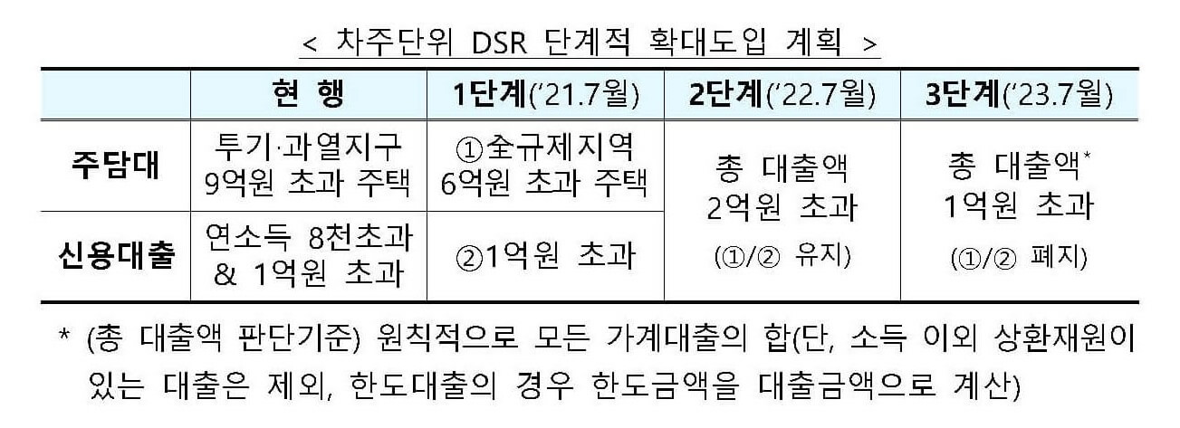 7월부터 규제지역 6억원 주택담보대출시 DSR적용하기로