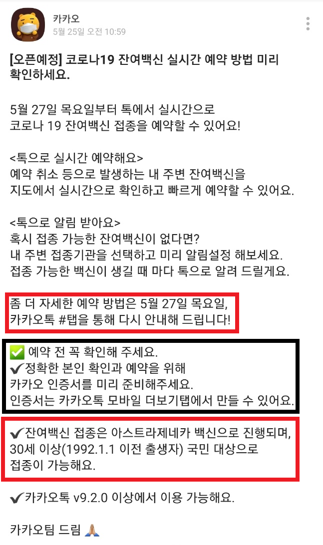 카카오 앱으로 잔여 백신 확인하기
