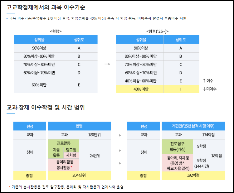 그리고 2025년부터는 전과목에 대한 미이수 제도를 도입한다고 합니다.