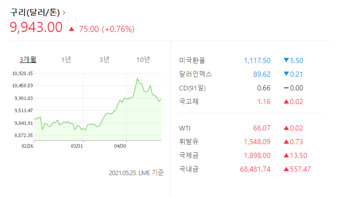 주력상품이 구리 가공 제품이라 구리 관련주로