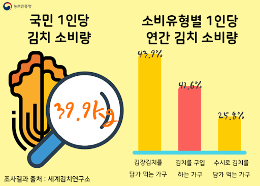 한국사람이라면 김치를 먹지 않고는 못 사는 사람들입니다. 한국의 김치 소비량은 정말 많습니다.