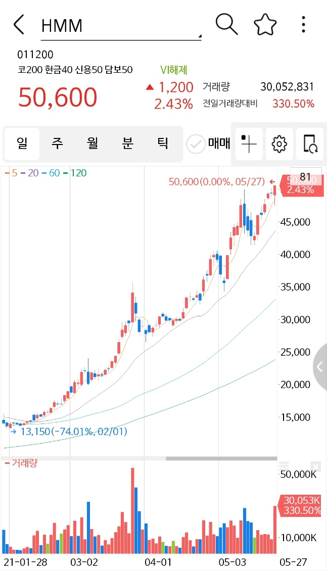 오늘도 상승한 'HMM'