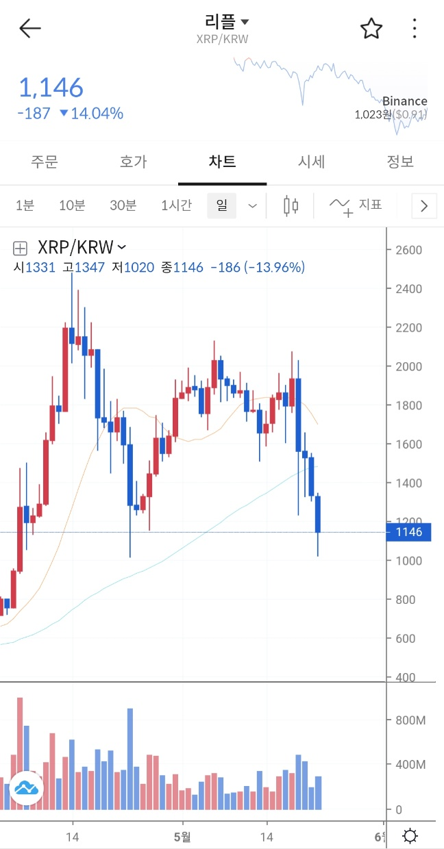 리플은 지금 시간으로 1146원을 기록하고 있다.