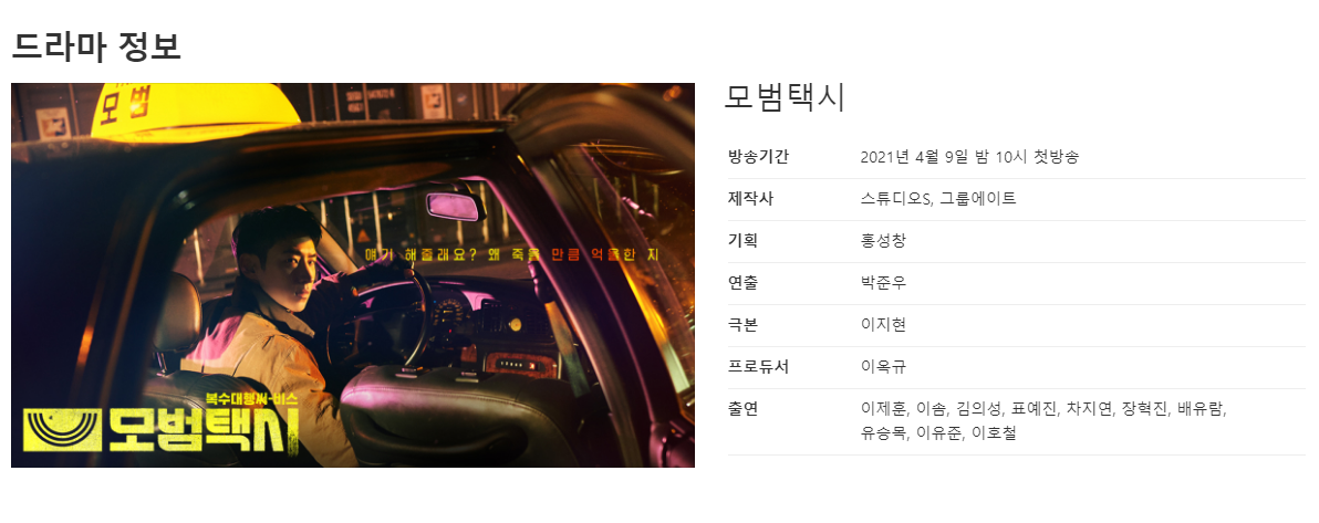 모범택시는 네이버 웹툰의 만화를 원작으로 드라마로 제작했다.