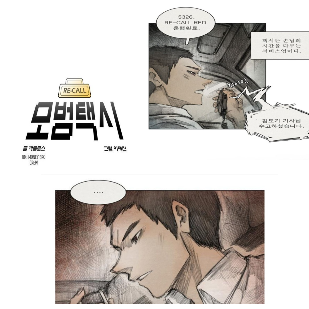 웹툰 모범택시 작가는 글 까를로스, 그림 이재진입니다.