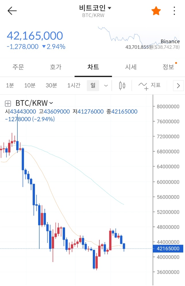 다른 거래소인 업비트에서 비트코인 가격은 4천181만6천원입니다.