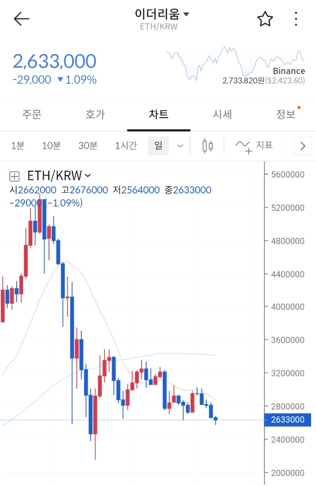 빗썸에서 이더리움 가격은 261만 1천 원으로 24시간 전보다 4.53% 내렸으며 업비트에서는 261만 6천 원입니다.