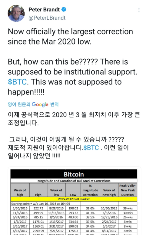 피터 브랜트는 어떻게 이런 일이 일어날 수 있냐는 트윗을 남겼고 지금은 3월 이후