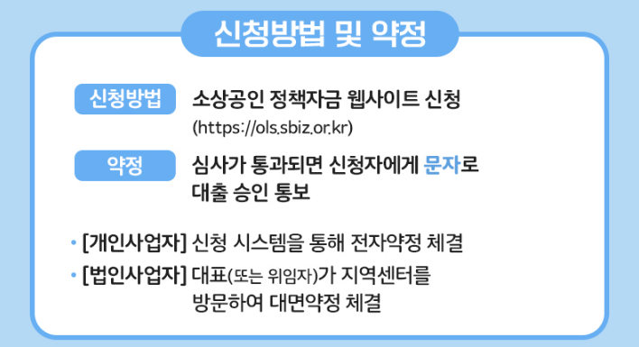 - 신청방법 : 소상공인 정책자금 웹사이트 신청