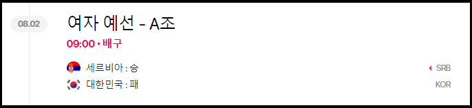 ▶ 예선 4차전 대한민국 대 세르비아 (대한민국 패)