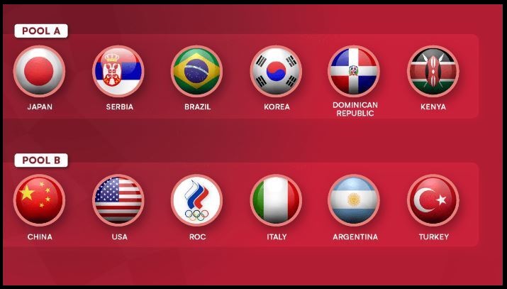 B조 중국(2위), 미국(1위), 러시아올림픽위원회(7위), 이탈리아(9위), 아르헨티나(16위), 터키(4위)
