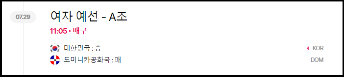 7월 31일 예선 3차전 가위 바위 도라도 질 수 없는 숙적 일본에게 피 말리는 접전 끝에 승리를 거두면서 남은 예선과 상관없이 8강행을 확정 지었습니다.