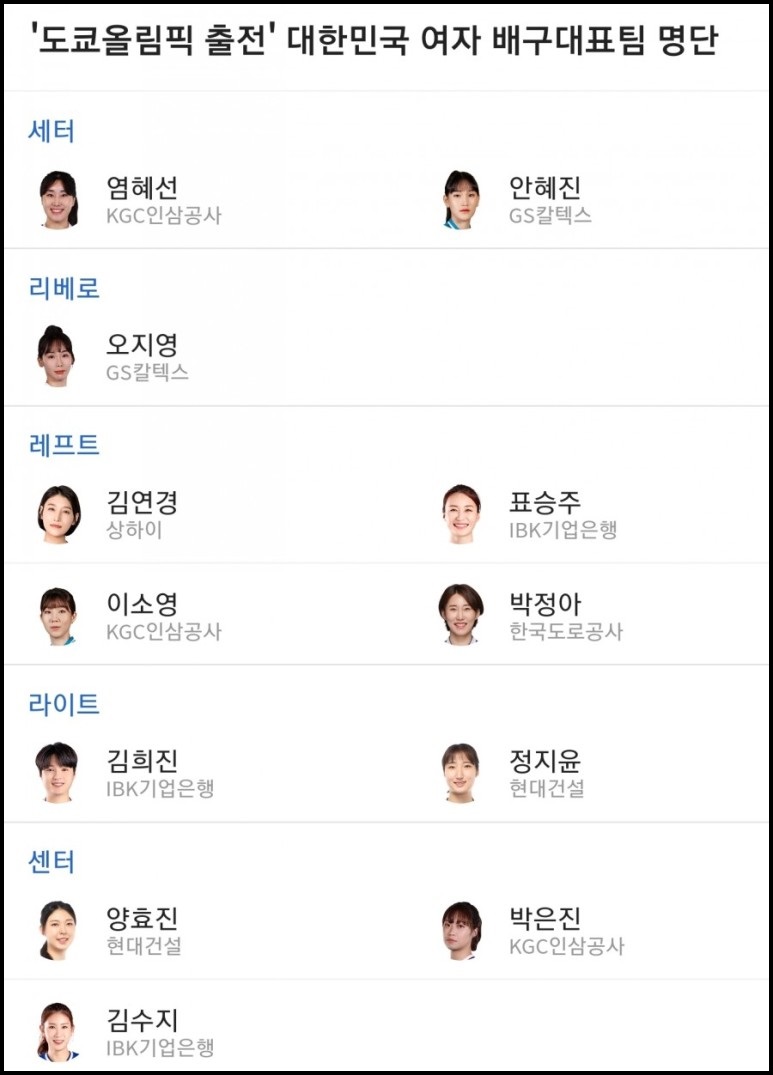 ▶ 2020 도쿄 올림픽 여자배구 최종 명단