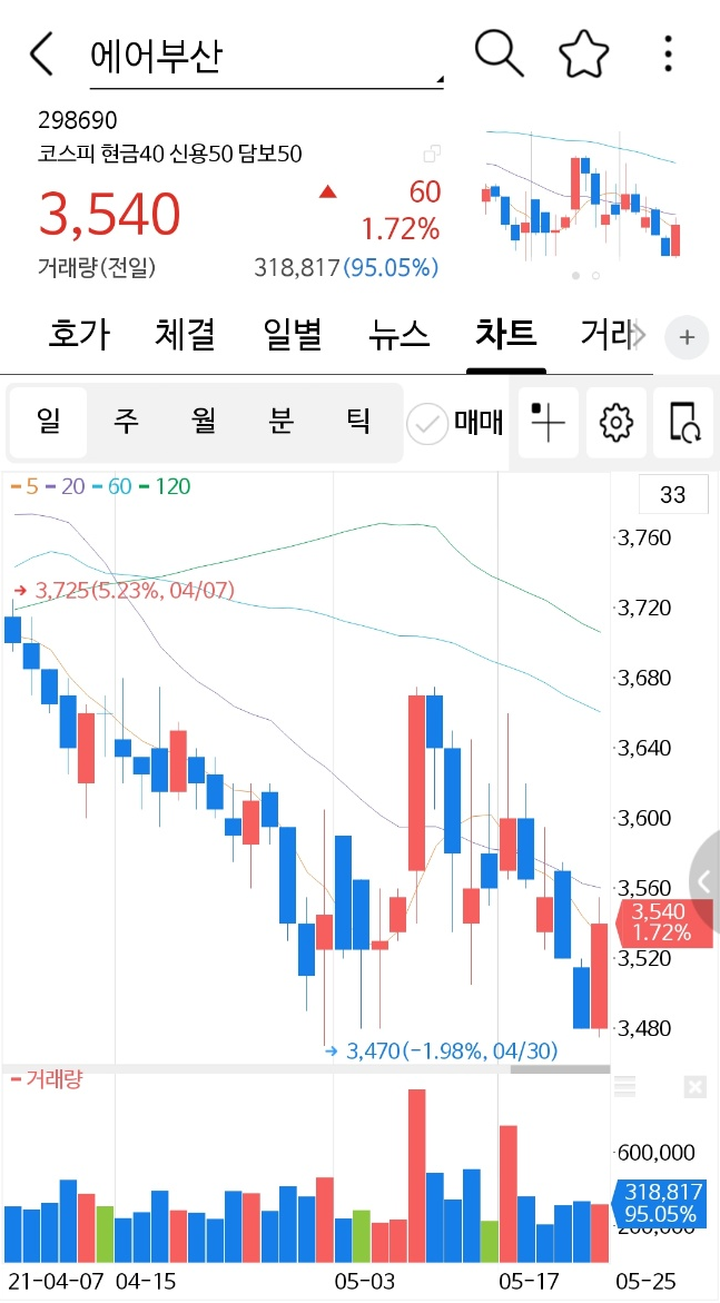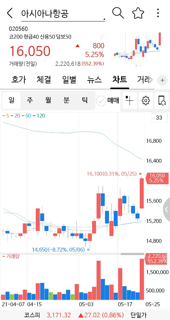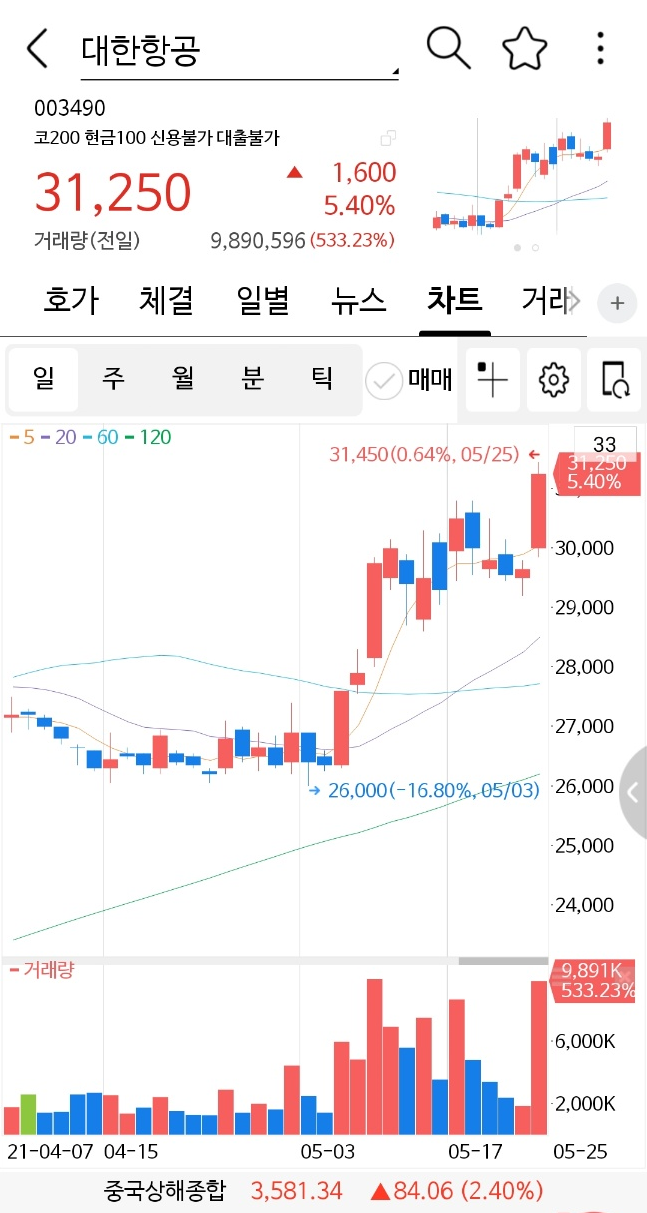 대한 항공의 주가는 어디까지 올라까지는