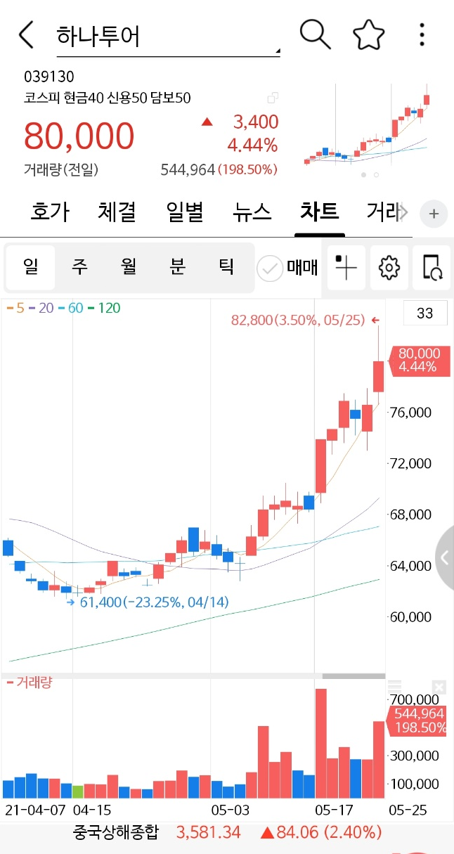 여행 관련주이며 이번 경제 정상화 기대감으로