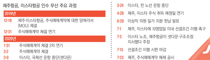 또 하나 제주항공의 이스타항공 인수 소식이 있었지만 제주항공이 인수를 포기하면서 이스타항공은