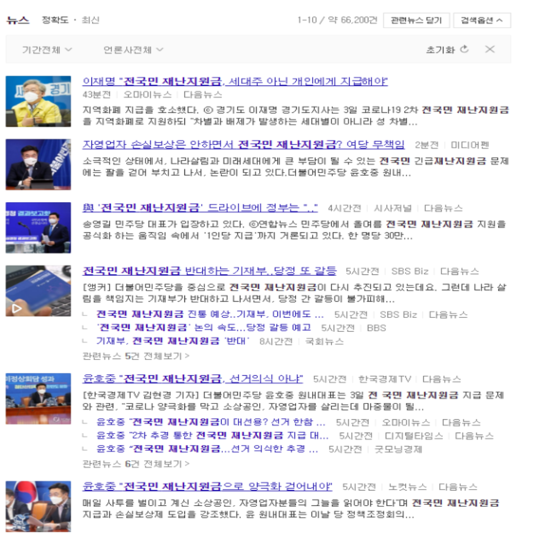 전 국민 재난지원금 지급 규모와 방식의 논의가 지금 언론에서 연일 보도가 되는 이유가