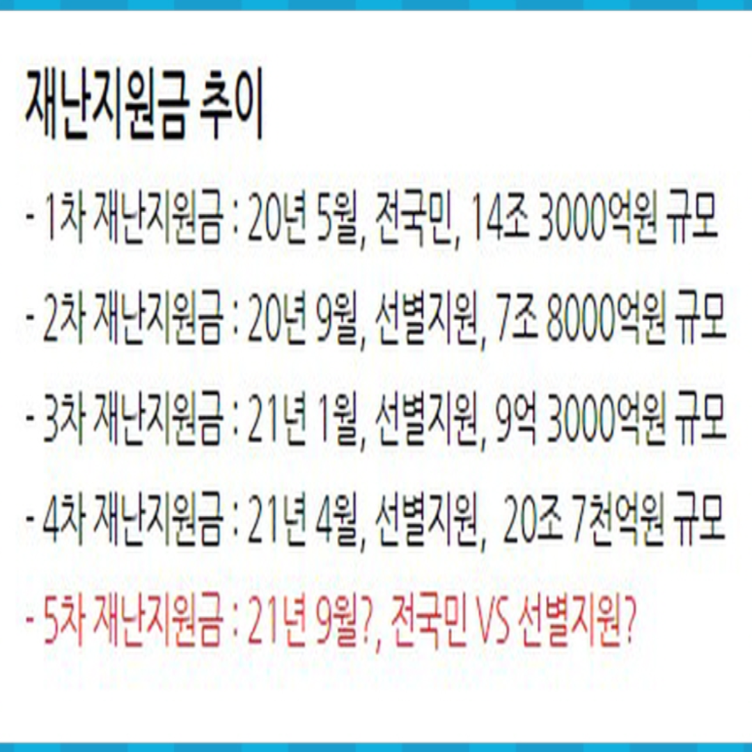 그리고 전 세계가 코로나 사태로 경제 위기가 힘들어지는 시간이 점차 길어지면서 코로나 확진자가 다녀가 영업정지와 제한 때문에 소득 급감이 나온 자영업자나 특수형태 근로자, 저소득층만 여러 차례에 이르는 재난지원금을 지급했습니다.