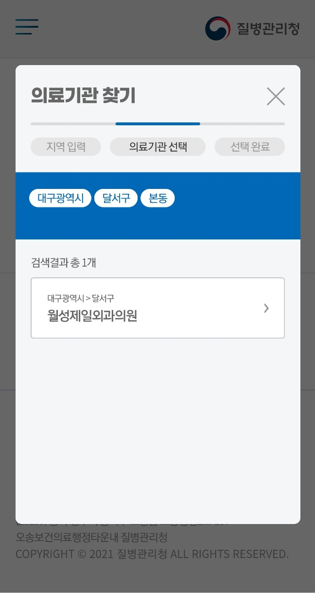 6번 - 본인 인증을 마치셨다면 다음 의료기관 선택창이 나오게 됩니다.