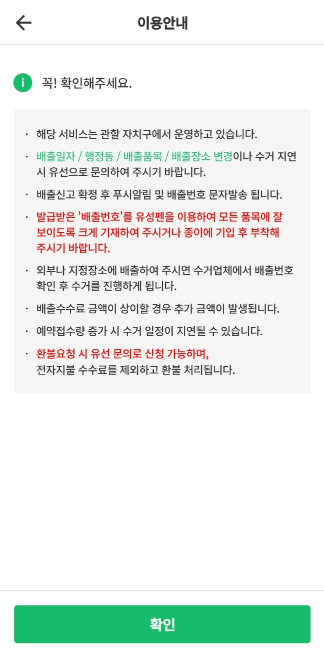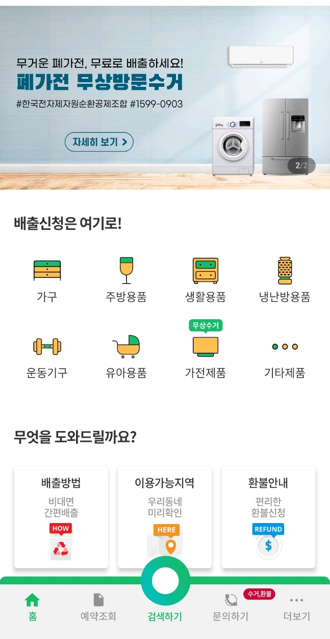 예전에는 행정사무소 민원으로 전화해서 관련부서 연결해야 되고 다시 관련 업자한테 연결해서 계좌 번호 받아서 입금하고 통화로 일일이 보고해 줘야 하는 번거로움이 있었습니다. 이제는 정말 간단한 앱 하나 설치에 이렇게 폐가전 제품을 버릴 수 있습니다. 참 괜찮은 앱입니다. 지자체에서 만들었다고 하더라고요. 감사합니다.