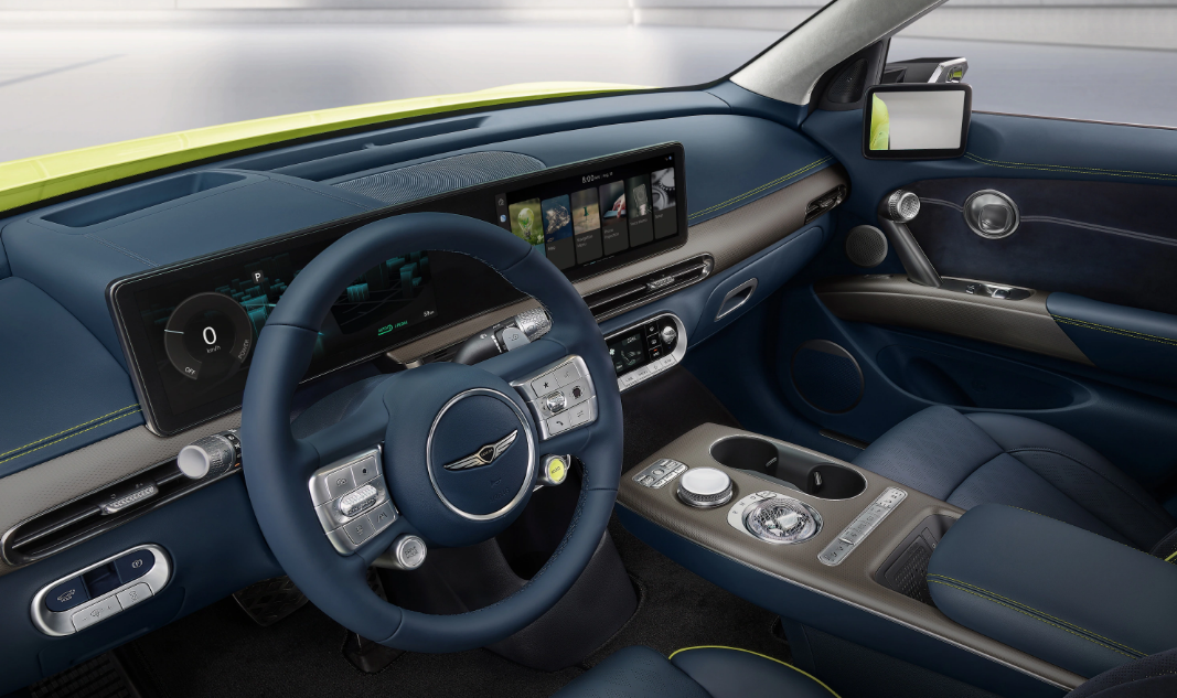 크리스털 스피어가 위치한 플로팅 콘솔은 공중에 떠 있는 듯한 디자인을 적용해, 전용 전기차의 특징인 슬림 칵핏과 플랫 플로어와 함께 승객에게 극대화된 실내 공간감을 주며 와이드하고 슬림한 조형으로 디자인된 크래쉬 패드는 쾌적한 실내 공간감을 더하고 대화면 통합 표시계(ccIC)는 클러스터와 인포테인먼트 시스템이 파노라믹 디스플레이로 연결돼 하이테크 한 이미지를 연출합니다.