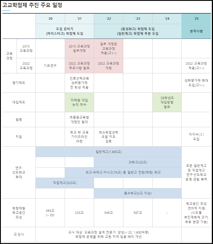 안녕하세요. 현재 고등학생들 그리고 앞으로 고등학생될 학생들과 고등학생 부모님들이 꼭 알아두어야할 부문이 있습니다. 지난 8월 23일 교육부가 고교학점제에 대한 발표를 하였습니다. 2025년 전면 적용을 위한 고교학점제 단계적 이행 계획이 발표가 있었습니다.