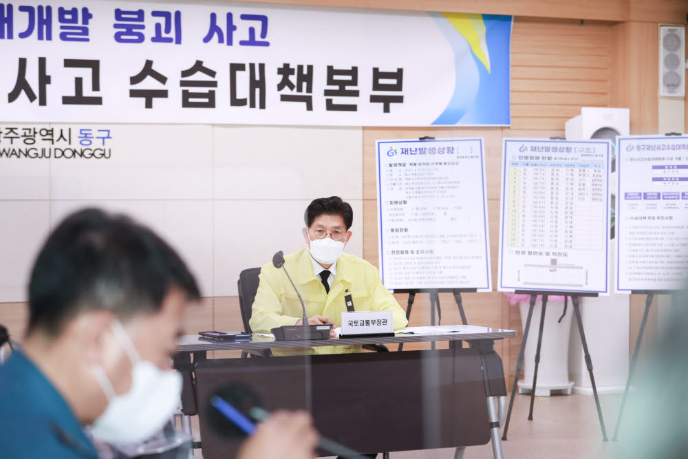노형욱 장관은 지난 15일 중앙사고 수습본부 4차 회의에서 “이미 시행 중인 간병인 지원과 재난 심리 지원반 운영에 더해 피해자와 그 가족들의 요청사항과 애로사항을 빠르게 해결할 수 있도록 관계부처가 힘을 모으겠다”며 “피해 보상 절차가 신속하고 원만히 진행되도록 보상 협의에 대해 광주 동구를 중심으로 적극 지원하겠다”라고 말했습니다.