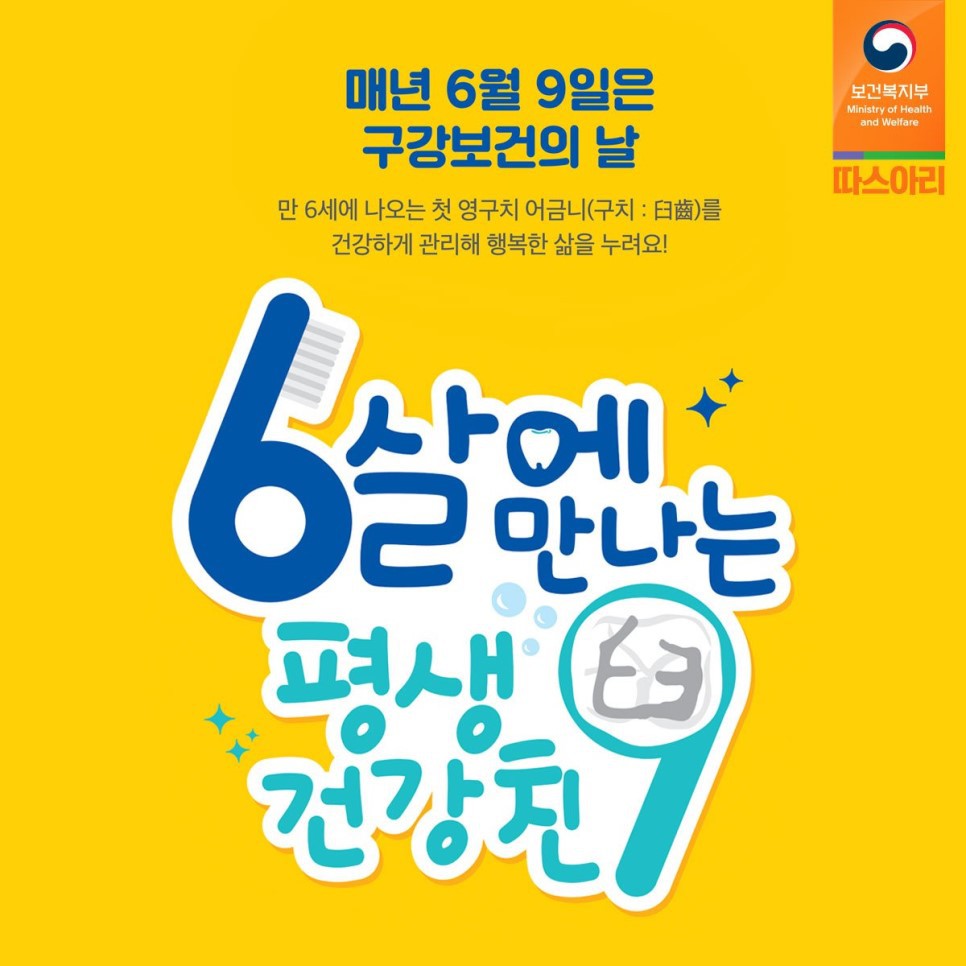 구강보건에 대한 국민의 이해와 관심을 높이기 위하여 제정한 법정기념일이며 매년 6월 9일이라고 합니다.