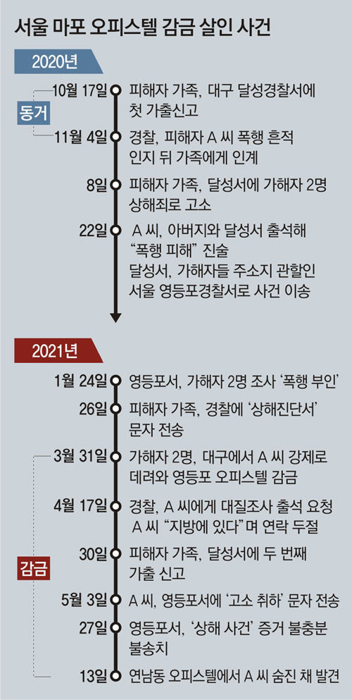 서울에서 두 사람과 지내며 폭행당한 박 씨는 지난해 11월 4일 아버지와 함께 대구에 온 뒤 전치 6주의 갈비뼈 골절로 입원 치료를 받았습니다.