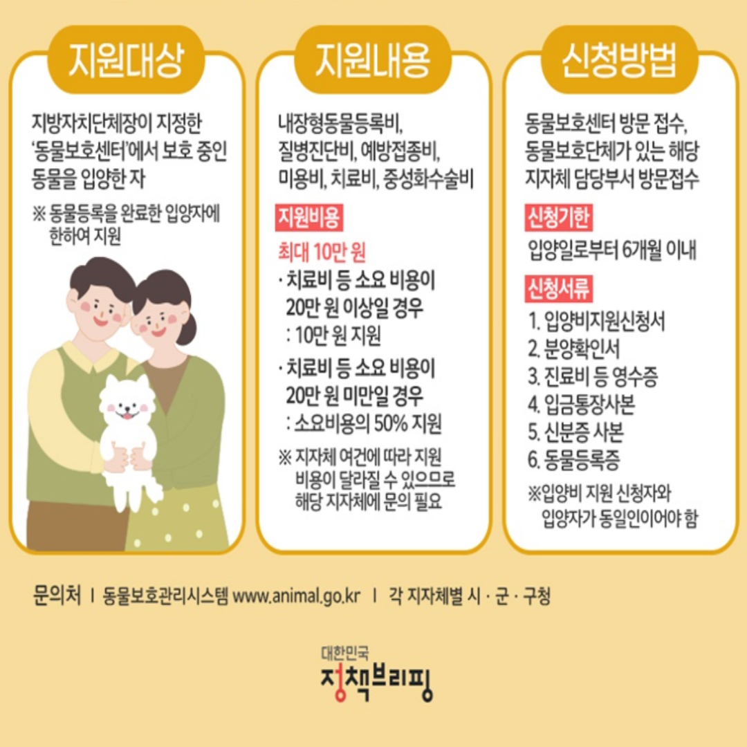 반려동물 입양비 지원금 받으시고 입양하세요