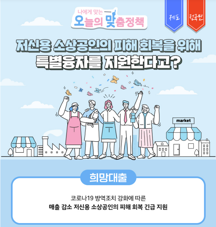 코로나 19 방역조치 강화에 따른 매출 감소로 저신용 소상공인의 피해 회복을 의해 정부가 특별융자를 지원한다고 합니다.