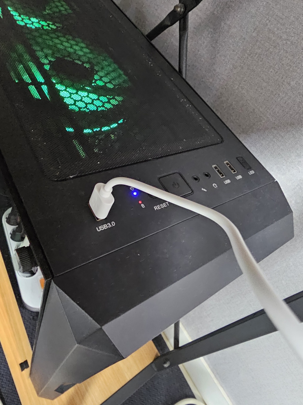 그래서 그냥 컴퓨터에 연결해서 바로 사용하고 있어요. 충전 중에도 작동 가능해서 불편함은 없었습니다.