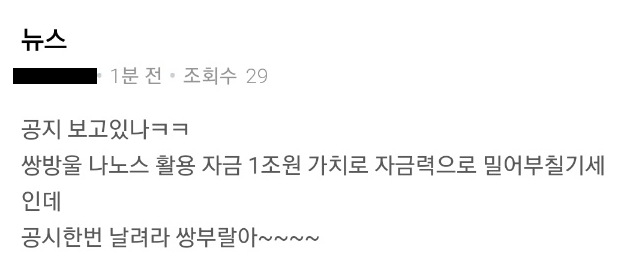 토론장에는 '아직 확정된 것이 없다' , '불확실한 출처죠' 라면서 기대감을 갖는 사람 들고 있지만 '팬티 장당 얼마?'라면 쌍방울의 하한가에 물린 사람들을 놀리는 글도 많이 올라오고 있다고 합니다.