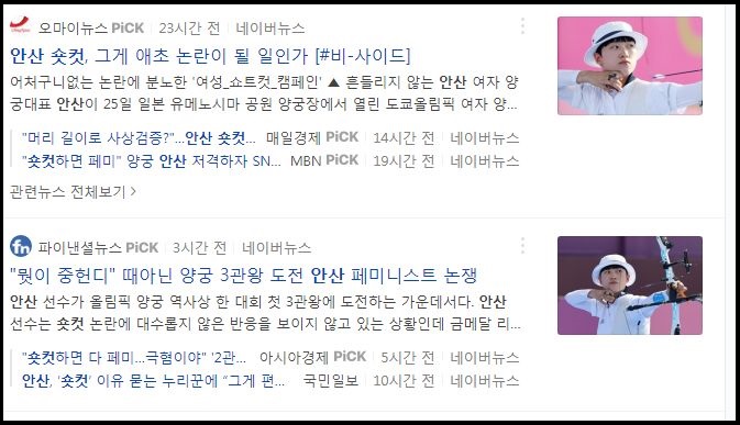 정말 자랑스럽고 대견합니다. 축하드립니다. 하지만 정작 안산 선수는 대회를 열심히 치르고 있지만 대한민국에서는 안산 선수가 페미니스트라는 논란에 핫한 이슈가 되고 있습니다.