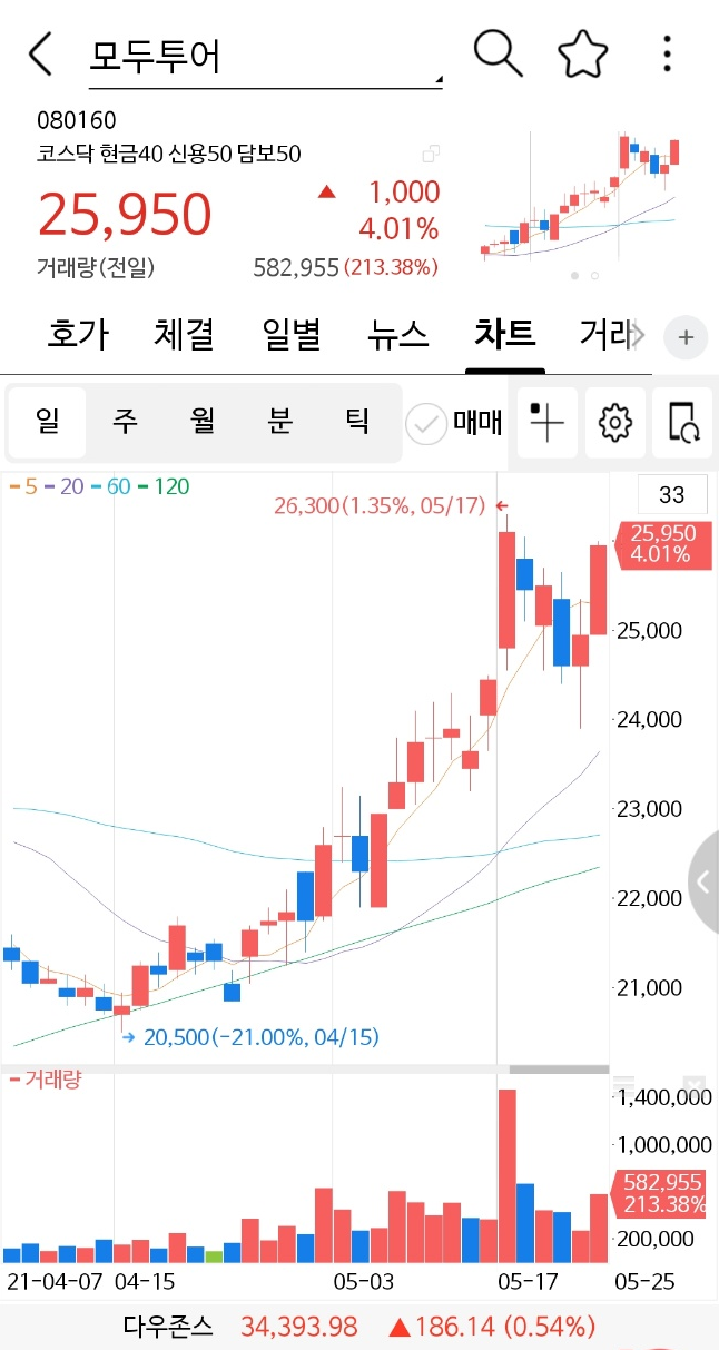 오늘 4% 상승으로 마감하였습니다.