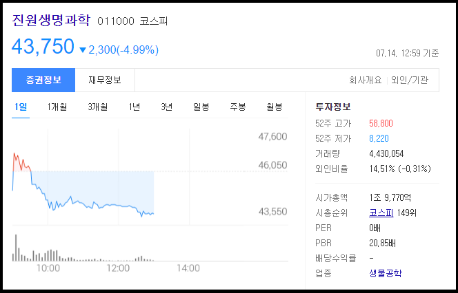 계속되는 코로나19 확진자가 늘어나면서 코로나19 관련주들이 계속 상승하는 모습을 보여주고 있는 상황에 반대로 주가가 떨어지고 있는 진원 생명과학에 대하여 알아보겠습니다. '진원생명과학'의 간단한 기업개요와 향후 전망에 대해서 포스팅하겠습니다.