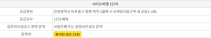 ▶ 인천광역시 미추홀구 시티오씨엘 1단지